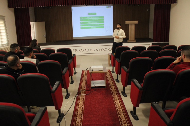 Kurumumuzda 11/11/2025 tarihinde hükümlü/tutuklulara yönelik kurum konferans salonunda Bağımlılıkla Mücadele konulu konferans düzenlendi. Kurumumuz Psiko-Sosyal Servis Birimi tarafından düzenlenen konferansta, Yeşilay Dayanışma Merkezi tarafından görevlendirilen uzman Ömer AKSOY sunucu olarak yer aldı. Hükümlü ve tutuklulara yönelik gerçekleştirilen konferansta bağımlılıkla mücadele kapsamında bilgilendirme yapılmış, hükümlü ve tutukluların bağımlılık konusundaki soru ve sorunları cevaplanmış, Yeşilay tarafından Ceza İnfaz Kurumlarında bağımlılıkla mücadele kapsamında gerçekleştirilen çalışmalar ve başvurular hakkında bilgilendirildikten sonra program son bulmuştur.