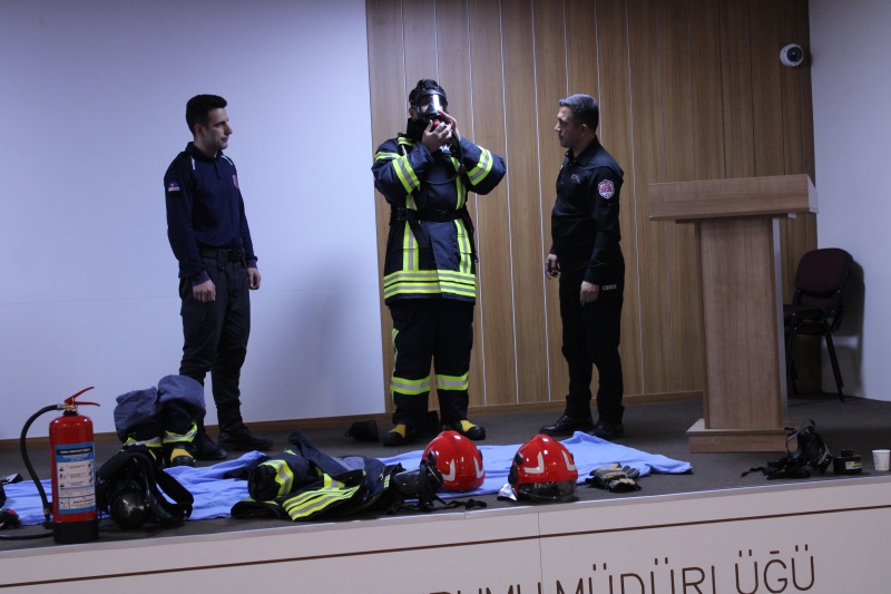 Personellere, yangın söndürme tüplerinin çeşitleri, hangi yangın türlerinde hangi ekipmanların kullanılacağı ve ekipmanların güvenli şekilde nasıl kullanılacağı anlatılmıştır. Bunun yanında yangın anında panik yapılmaması, tahliye kurallarına uyulması, acil çıkışların kullanımı ve can güvenliğinin öncelikli olduğu konular üzerinde durulmuştur.