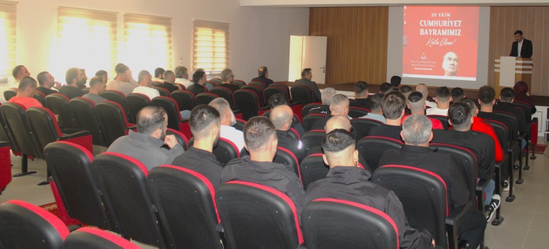 Kurumumuzda Türkiye Cumhuriyeti Devletinin kurucusu büyük komutan Ulu Önder Gazi Mustafa Kemal ATATÜRK’ün, 29 Ekim 1923’te ilan ettiği Cumhuriyetimizin ilanının 102. Yılında hükümlü ve tutuklulara yönelik kurum konferans salonunda 28.10.2025 tarihinde konferans düzenlendi.
