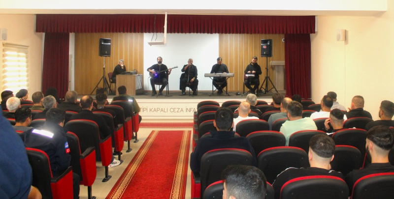 Kurumumuz Eğitim ve Öğretim Servisi tarafından düzenlenen etkinlikte Erzurum Palandöken Belediyesi Kültür İşleri Müdürlüğünce görevlendirilen Şahin SARIGÜL, Orhan PULLU, Mehmet AKSAKALLI, Burak MARAL ve Rahmi ÇUBUKÇU yer aldı. Belediye sanatçıları tarafından çeşitli müzik eserleri seslendirildi. Düzenlenen etkinlik, hükümlü ve tutukluların moral ve motivasyonlarının artırılması, sosyal-kültürel faaliyetlere katılımlarının desteklenmesi açısından önemli katkı sağladı.